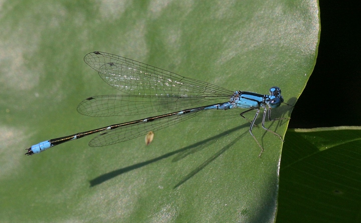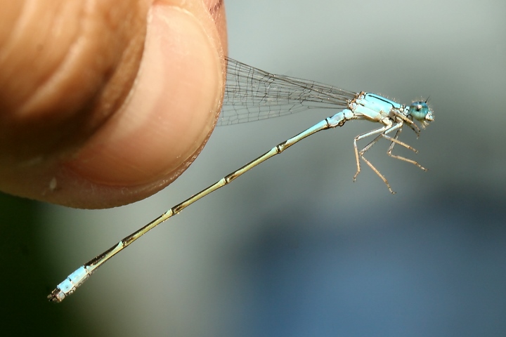 Below: A tiny male Fragile Forktail rests on a blade of grass in Carroll Co., Maryland (6/17/2007).