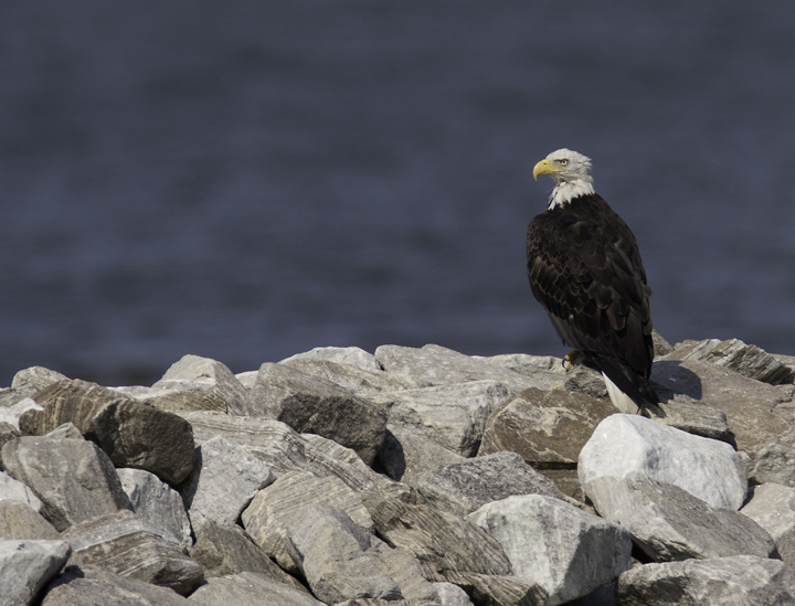 Below: An adult Bald Eagle rests at Cedar Hill Marina in Wicomico Co., Maryland (7/27/2007).
