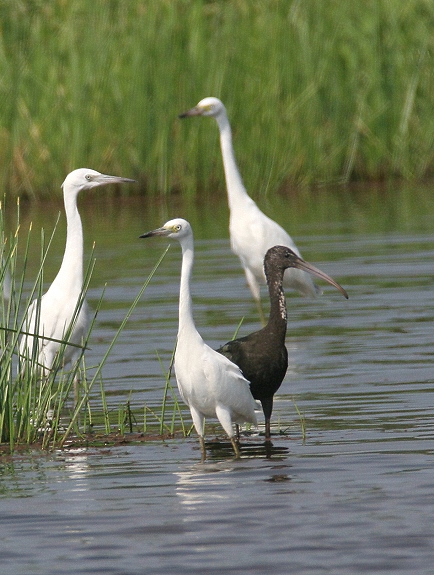 Below: An immature Glossy Ibis with immature Little Blue Herons in Worcester Co., Maryland (7/28/2007).