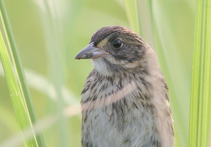 Below: A close-up of a Seaside Sparrow in Dorchester Co., Maryland (7/29/2007).