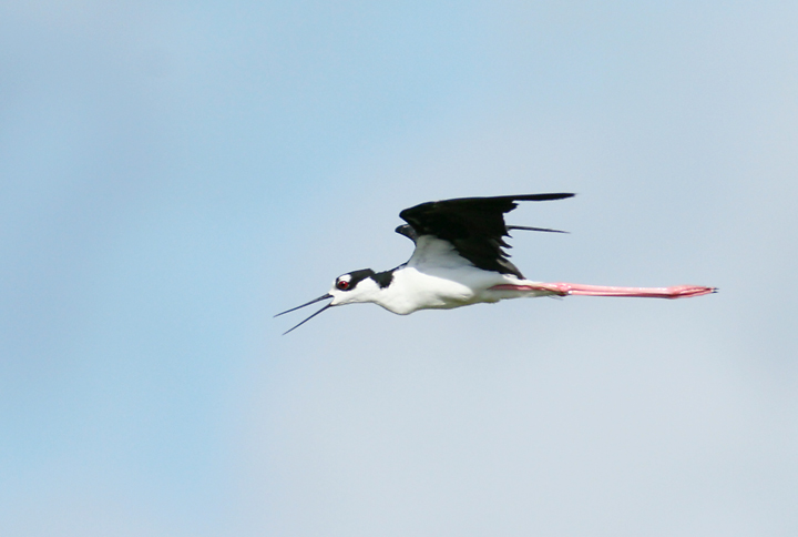 Below: A Black-necked Stilt in flight at Santa Ana NWR, Texas (8/5/2007).