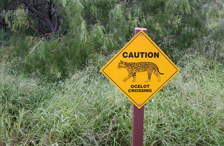 Below: Now here's a sign you can't see too often. Laguna Atascosa is home to approximately one third of the U.S. population of Ocelots. The estimated U.S. population is only about 100 of these beautiful, extremely secretive cats. The two rangers with whom we chatted had a total of three sightings between them.