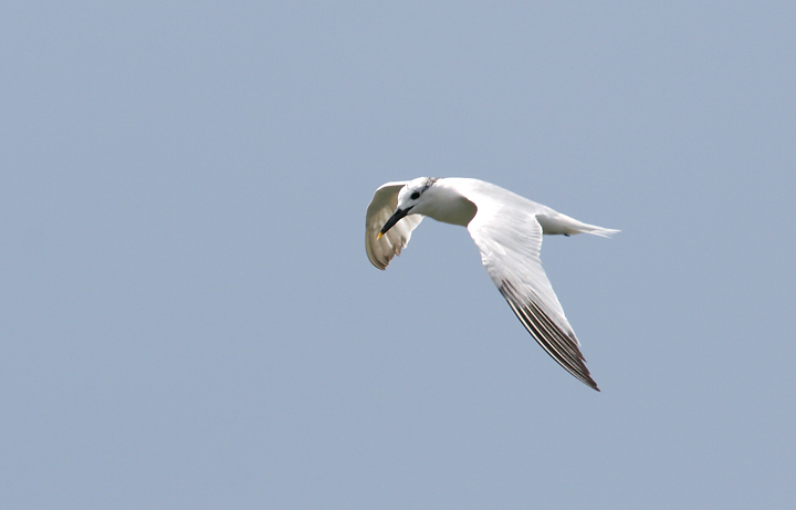 Below: A Sandwich Tern in nonbreeding plumage hunts Laguna Madre, Texas (8/4/2007).