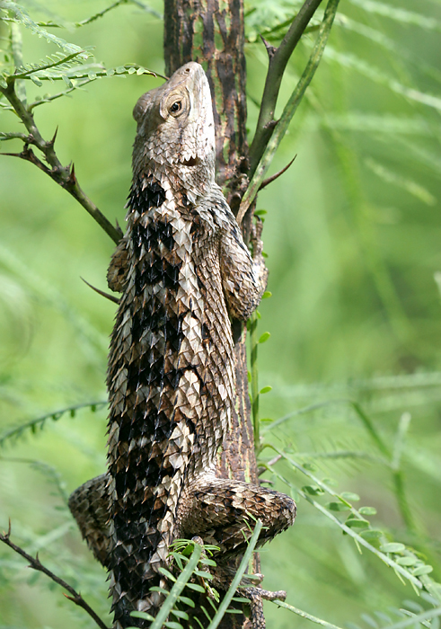 Below: A Texas Spiny Lizard rests in the shade at Sabal Palms Grove, Texas (8/4/2007).