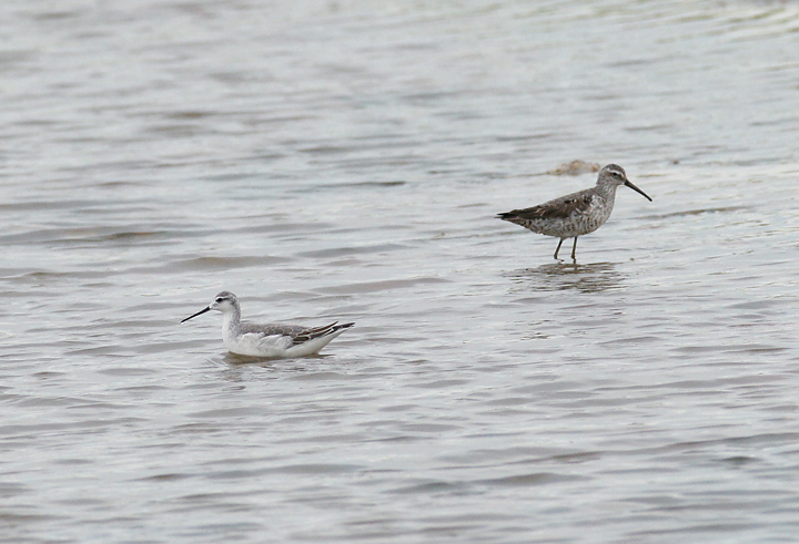 Below: The joys of traveling during migration - a Wilson's Phalarope (left) and Stilt Sandpiper (right) at Laguna Atascosa NWR, Texas (8/4/2007).