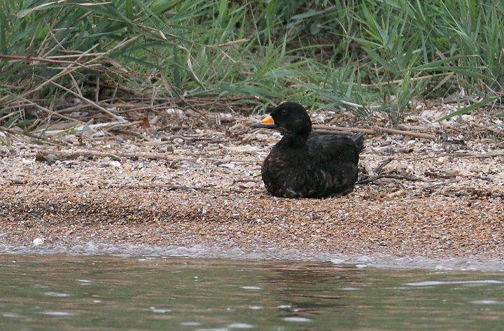 Below: A drake Black Scoter resting on the shoreline at North Beach, Calvert Co., Maryland (9/14/2007). This is an unusual sight at any time of year in this area, let alone in September.