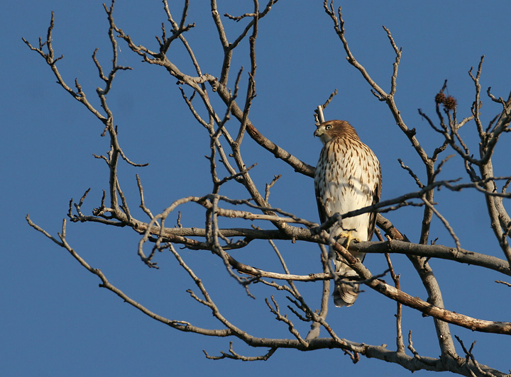 Below: An immature Cooper's Hawk in the morning light near Havre de Grace, Harford Co., Maryland (9/16/2007).
