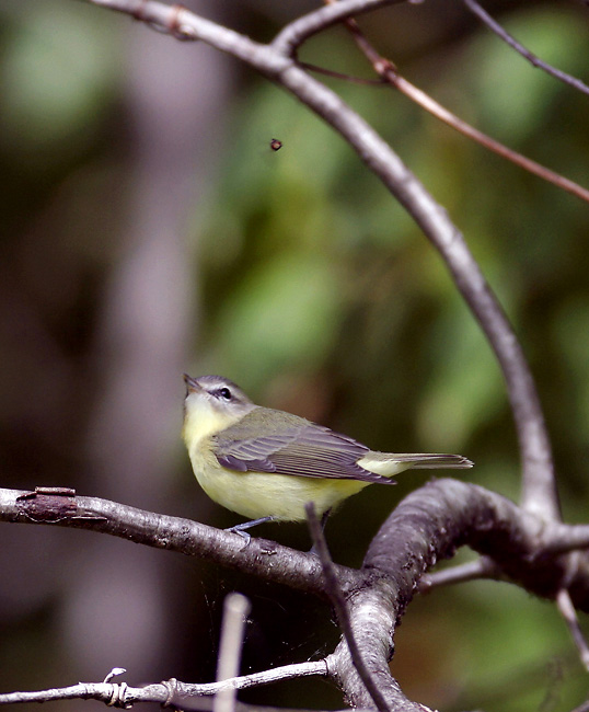 Below: A Philadelphia Vireo foraging in Harford Co., Maryland (9/16/2007). Note the bird's attention to the flying insect.