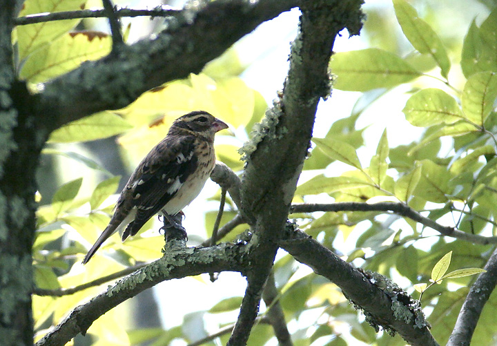 Below: A Rose-breasted Grosbeak foraging high in the trees at Harford Glen, Harford Co., Maryland (9/16/2007).