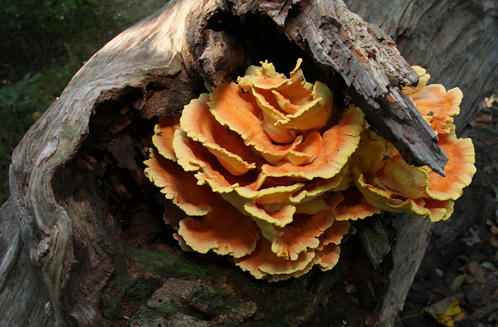 Thanks to Paul Noell for ID help: Sulphur Shelf (Laetiporus sulphureus) - considered by most to be a good edible, though some people have an allergic reaction.