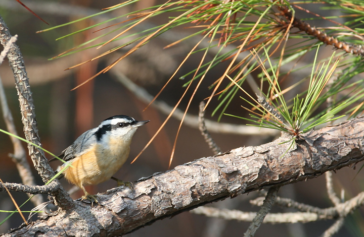 Above and below: All three nuthatches at Point Lookout SP, St. Mary's Co., Maryland (10/7/2007) - White-breasted, Red-breasted, and Brown-headed, respectively. The White-breasted Nuthatch above was by far the least expected, as it probably only occurs at the point as a migrant.