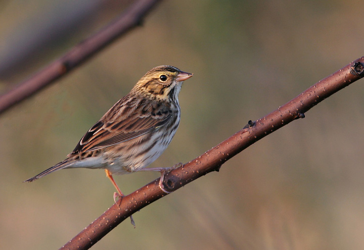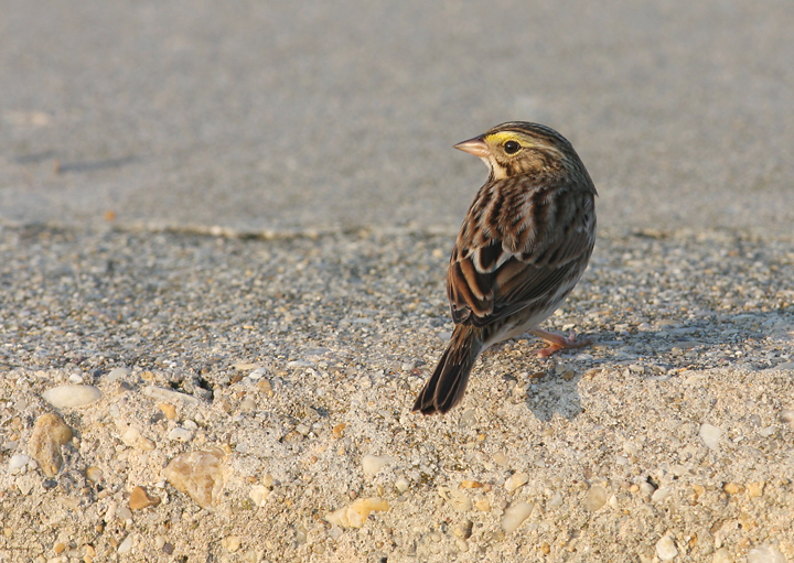 Below two: Savannah Sparrows warming up in the dawn light at Point Lookout SP, St. Mary's Co., Maryland (10/7/2007).