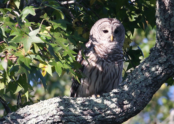 Above: A Barred Owl human-watching near the Nassawango River in Wicomico Co., Maryland (10/14/2007).
