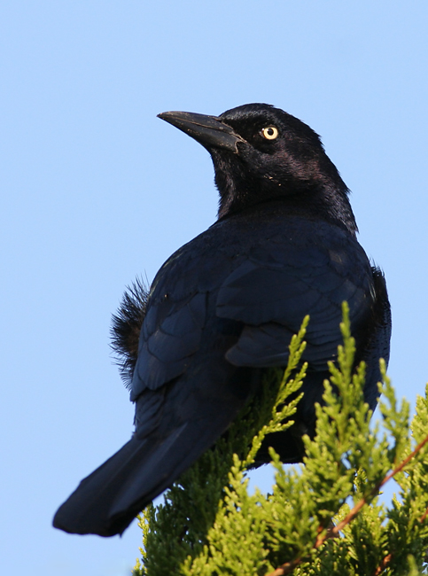 Below five: A male Boat-tailed Grackle causing a general raucous on Assateague Island, Maryland, its call reminiscent of shaking a can of spraypaint (10/14/2007).