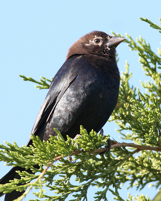 Below: A molting male Brown-headed Cowbird warms in the morning sun on Assateague Island, Maryland (10/14/2007).