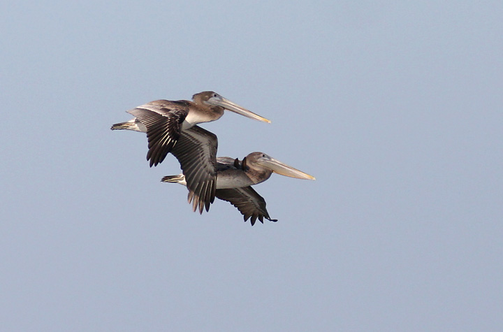 Below: Brown Pelicans in flight off Assateague Island, Maryland (10/14/2007).