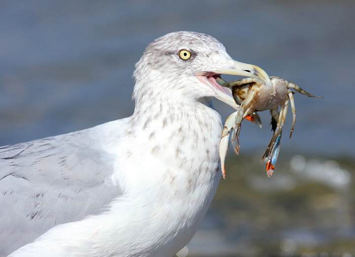 Below: A Herring Gull poses with its prize feast - easy living on Assateague Island, Maryland (10/14/2007).