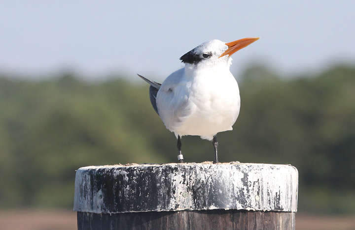Below: A Royal Tern perches on a piling on the Somerset side of the Whitehaven Ferry, Maryland (10/13/2007).