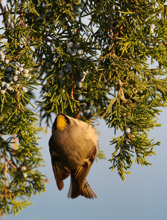 Below: A Golden-crowned Kinglet forages in my favorite patch of morning light at Assateague Bayside (11/11/2007).