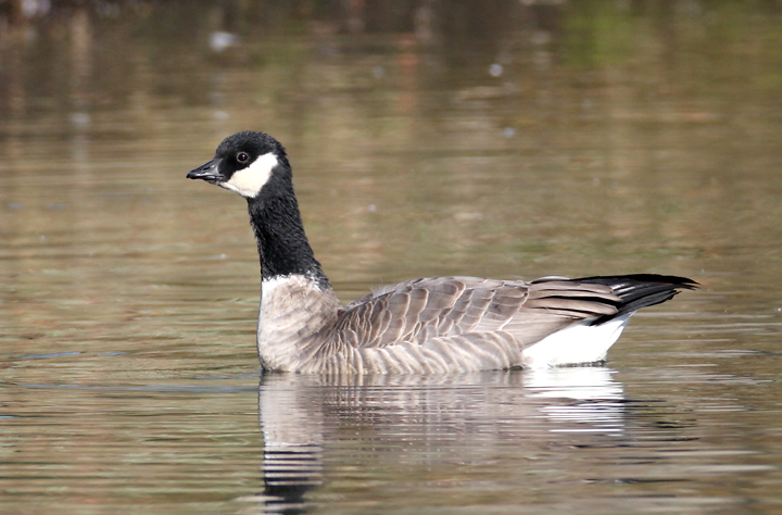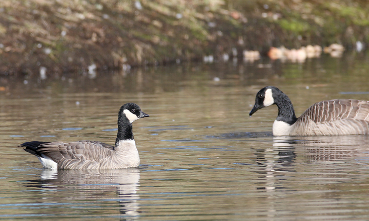 Below three: Two of three Cackling Geese on Back Creek, Cecil Co., Maryland (11/25/2007). Note the subtle white collar on the bird in the first two photos. Below photo shows a Cackling Goose with a Canada Goose.