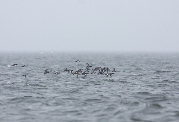Below: A flock of Greater Scaup flies past Point Lookout, St. Mary's Co., Maryland.