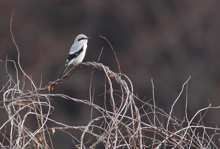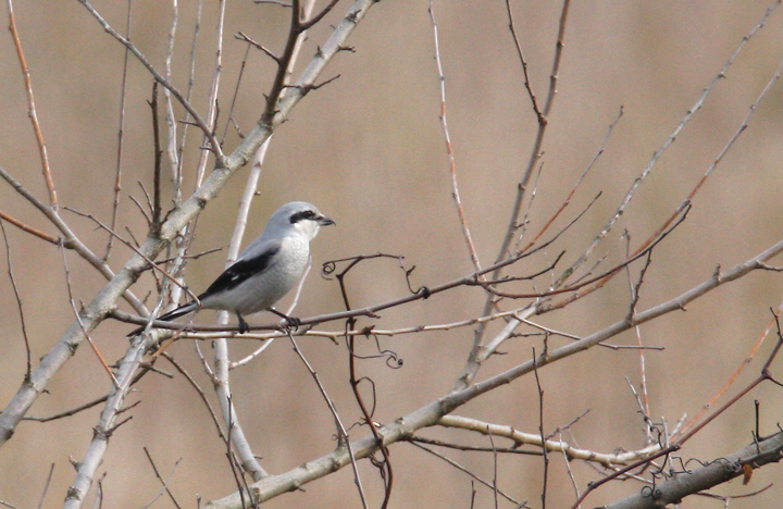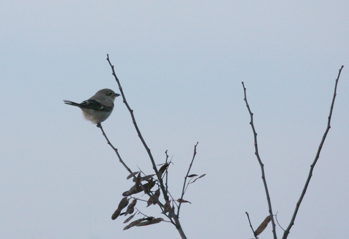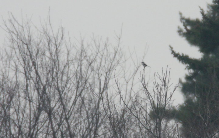 Below: A very distant Northern Shrike hunts beside a marsh in Garrett Co., Maryland (11/19/2007).
