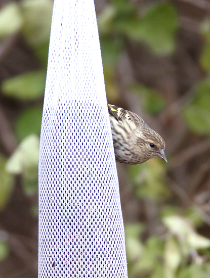Below: A Pine Siskin feeds heartily at J. B. Churchill's feeders in Allegany Co., Maryland (11/18/2007).