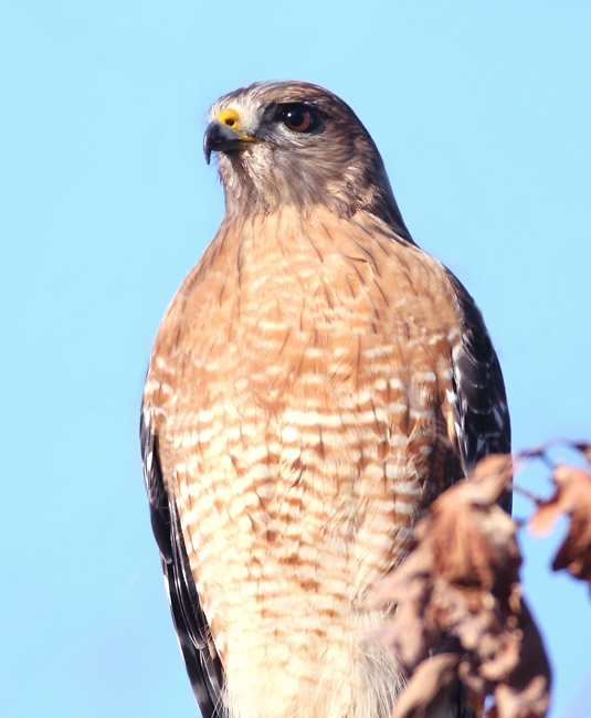 Below: An adult Red-shouldered Hawk poses momentarily near Piscataway Park, P.G. Co., Maryland (12/8/2007).
