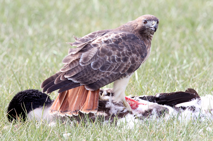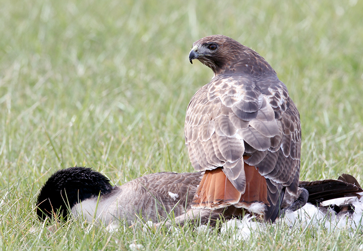 Below two: An adult Red-tailed Hawk takes advantage of the abundant Canada Geese, Frederick Co., Maryland (11/17/2007). We didn't see the hawk take this goose, so it could be scavenging another predator's feast.