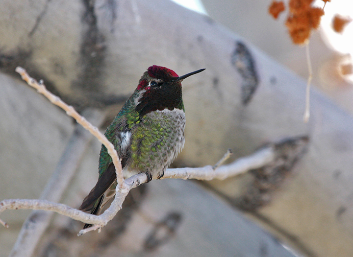 Below: A male Anna's Hummingbird in Piñon Hills, California (1/11/2008).
