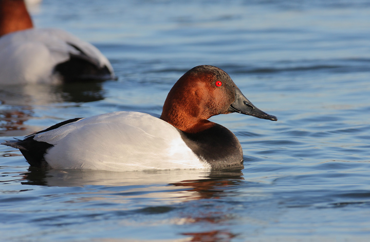 Below two: Likewise, a drake and hen Canvasback at the Cambridge waterfront, Dorchester Co., Maryland (2/2/2008). It's a rare treat to enjoy such close-up views of these beautiful birds.