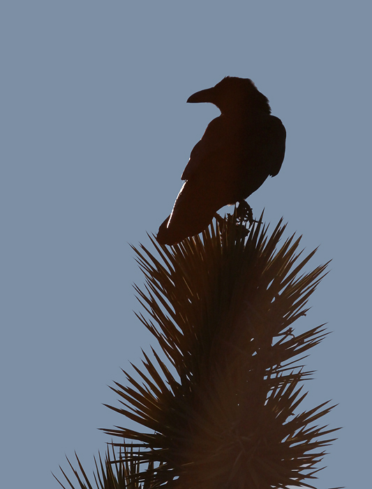 Below: Silhouette of a Common Raven on a Joshua Tree in Piñon Hills, California (1/11/2008).