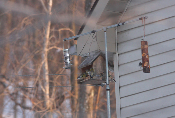 Below: Documentation photo of a flock of Evening Grosbeaks in Garrett Co., Maryland (1/20/2008).