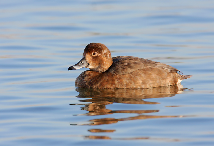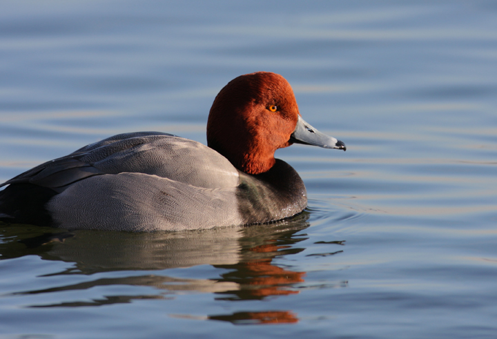 Below two: A drake and hen Redhead, respectively, at the Cambridge waterfront, Dorchester Co., Maryland (2/2/2008).