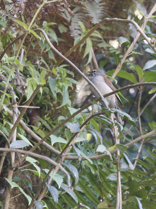 Below: Despite much enjoyment of the Brown-backed Solitaire's impressive song, we had precious few glimpses of the species (3/2008).