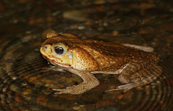Below: A huge Marine Toad (also known as Cane Toad or Giant Toad) along the Rio Papaloapan near Valle Nacional (3/2008).