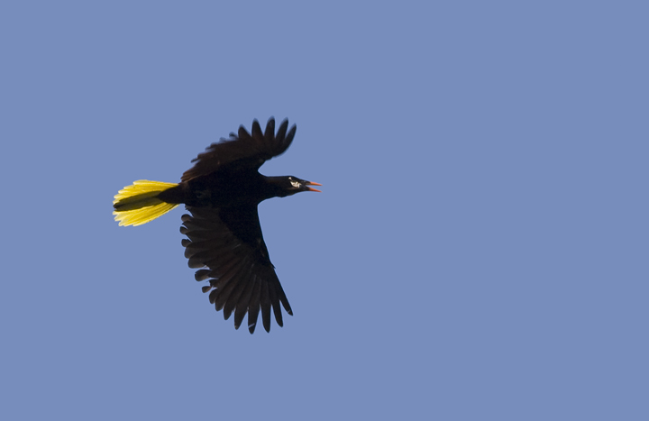 Below: A Montezuma Oropendola, one of my favorite birds, in flight west of Tuxtepec (3/2008).