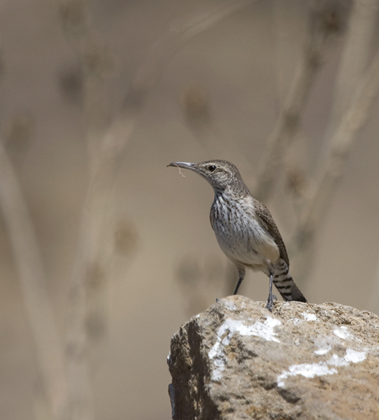 Below: A Rock Wren with what appears to be a bit of nesting material near Teotitlan de Valle, Oaxaca (3/2008).