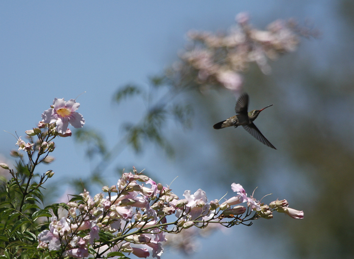 Below: A Dusky Hummingbird visits some roadside flowers near San Martin Tilcajete (3/2008).