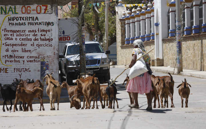 Below: A goat-herder moves her flock through San Martin Tilcajete in Oaxaca (3/2008).