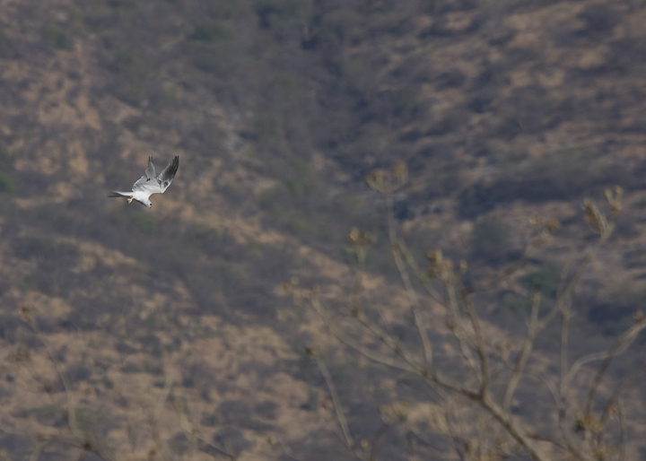 Below: A White-tailed Kite hunting in the early morning near Monte Alban (3/2008).