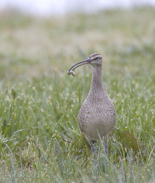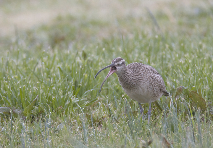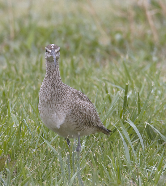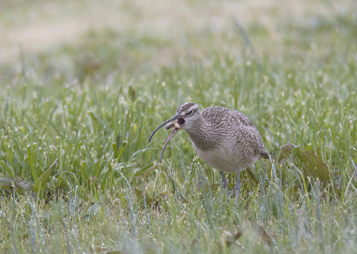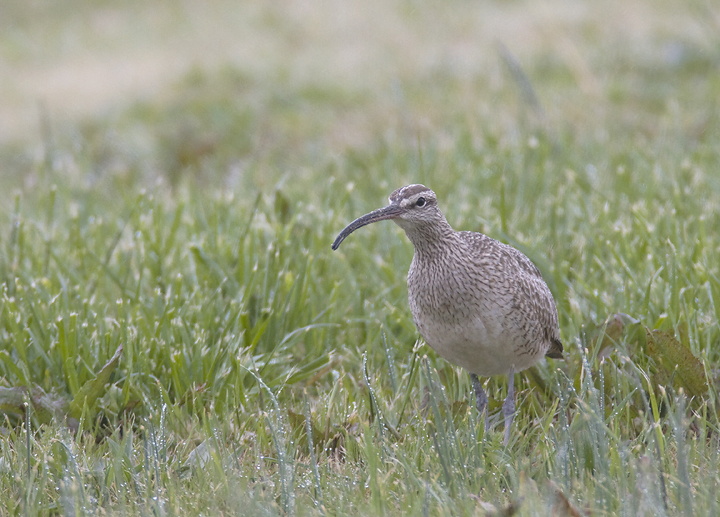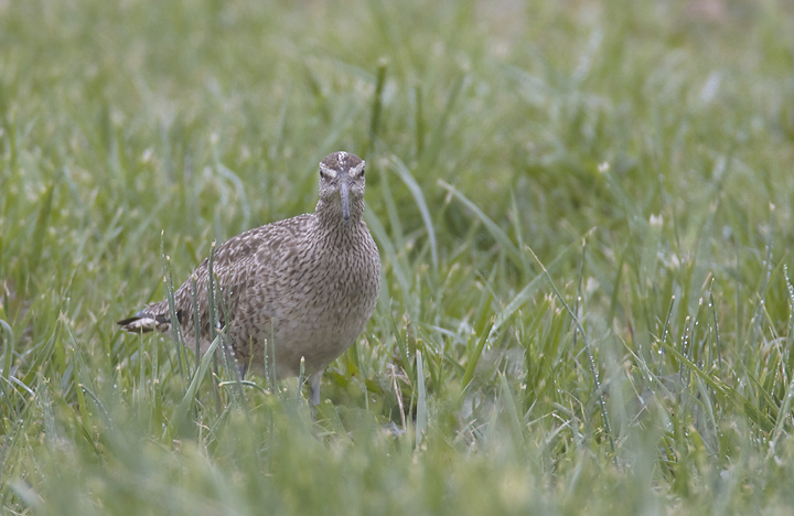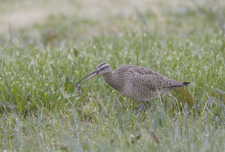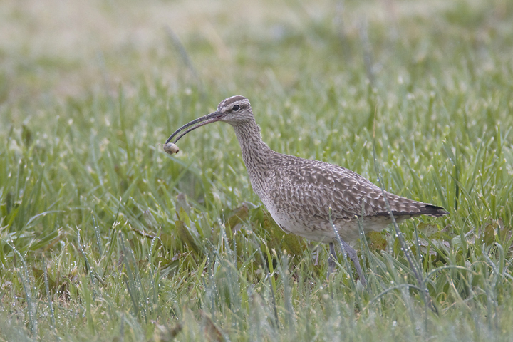 Above and below: This migrant Whimbrel made a stopover at the Chance Inlet in Somerset Co., Maryland (4/6/2008). We watched it forage in a grassy area beside the Bay, probing deeply in the grass to retrieve many small snails and grubs.