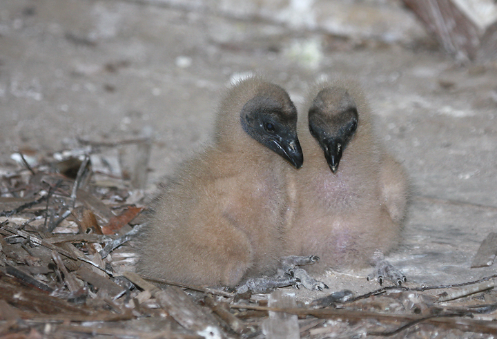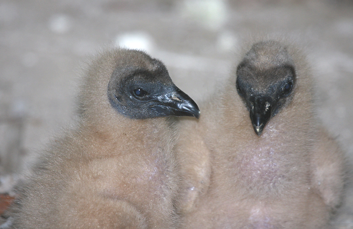 Above and below two: OK, that settles it. Everything is cute as a baby. Here are two downy Black Vulture young in P.G. Co., Maryland (4/23/2008). I had always wanted to find a Black Vulture nest, so when I saw two adults fly out the window of an abandoned house, I had a feeling I might be in luck. These two little Muppets were on the floor in the corner of a room - no nest to speak of - sitting quite peacefully. I snapped these strangely adorable photos and let their parents get back in there.
