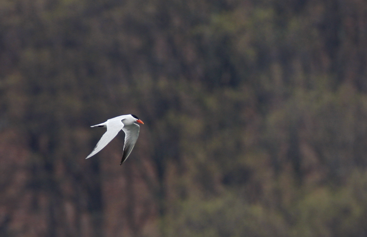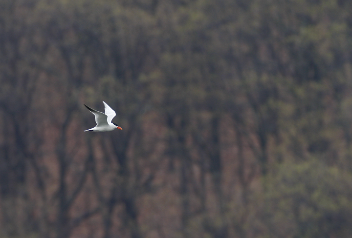 Below: A Caspian Tern drops in on Rocky Gap SP in Allegany Co., Maryland (4/20/2008). The stormy weather in western Maryland on Sunday (4/20/08) caused a noteworthy fallout of terns, gulls, loons, and grebes.