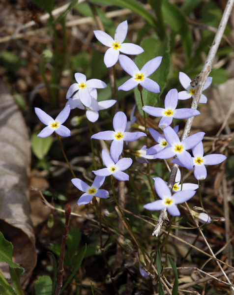 Below: Azure Bluets, also known as Common Bluets (Houstonia caerulea), in eastern Allegany Co., Maryland (4/19/2008).
