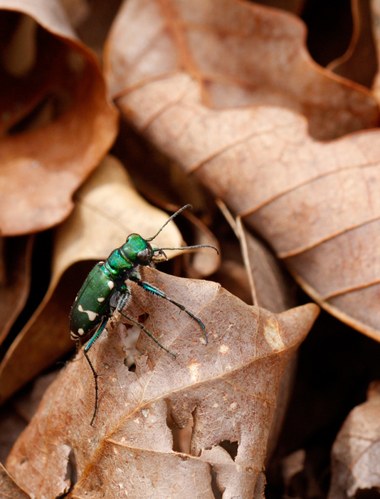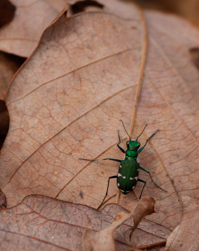 Below: A Northern Barrens Tiger Beetle (Cicindela patruela patruela) in Allegany Co., Maryland (4/19/2008).