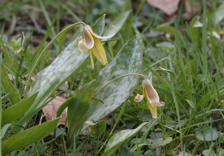 Below: Yellow Trout Lilies (Erythronium americanum) blooming along the C&O Canal, Allegany Co., Maryland (4/13/2008).