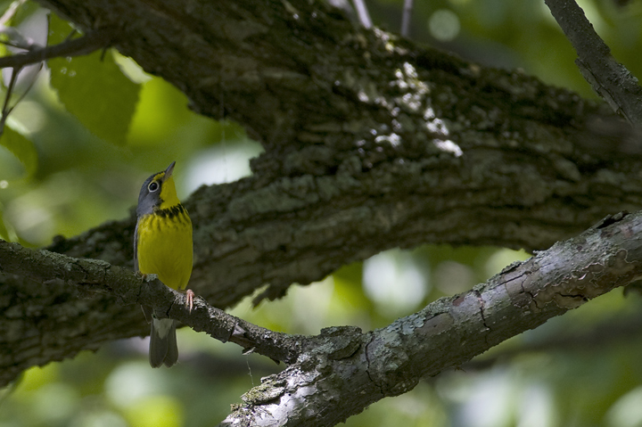 Below: A stunning male Canada Warbler serenades us at Lilypons Water Gardens, Frederick Co., Maryland (5/25/2008).