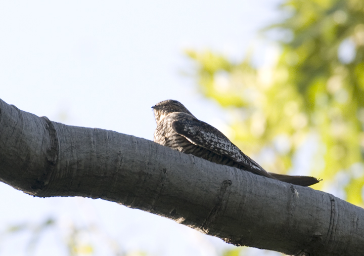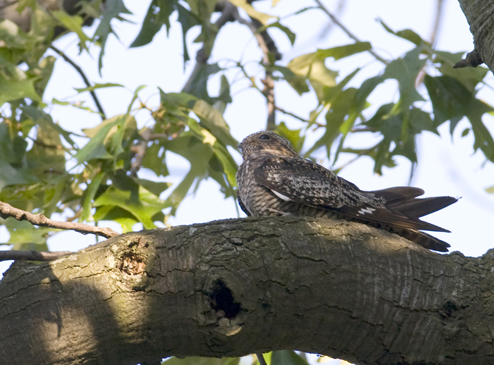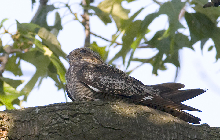 Below: OK, this is just awesome. My friend Tom Feild and I were having a drink in my yard after a great day of kayaking and birding, and we were discussing how strange it is that people almost never report finding roosting nighthawks in Maryland. Literally within minutes, this Common Nighthawk flew across the yard and landed in one of our oaks. We couldn't believe it. (Rockwood Beach, Anne Arundel Co., Maryland, 5/26/2008)
