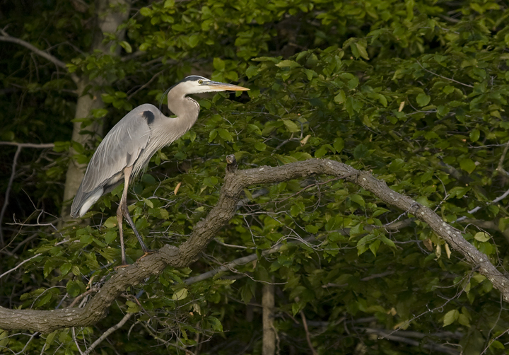Below: A Great Blue Heron roosting along the Patuxent River in Charles Co., Maryland (5/26/2008).